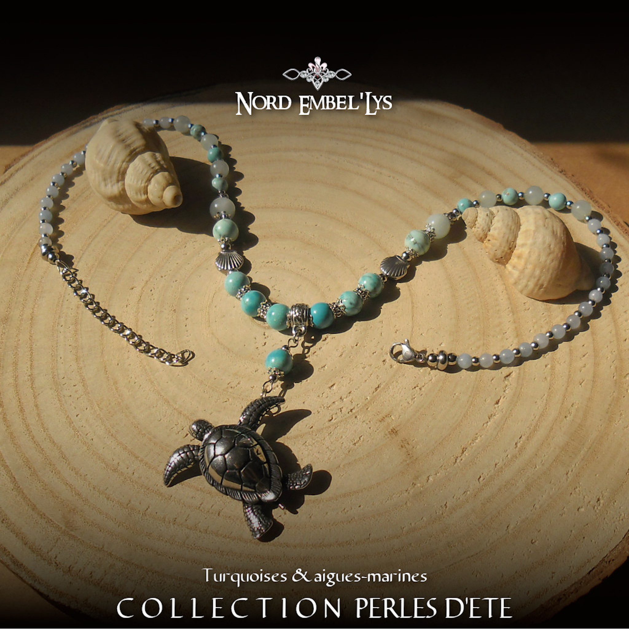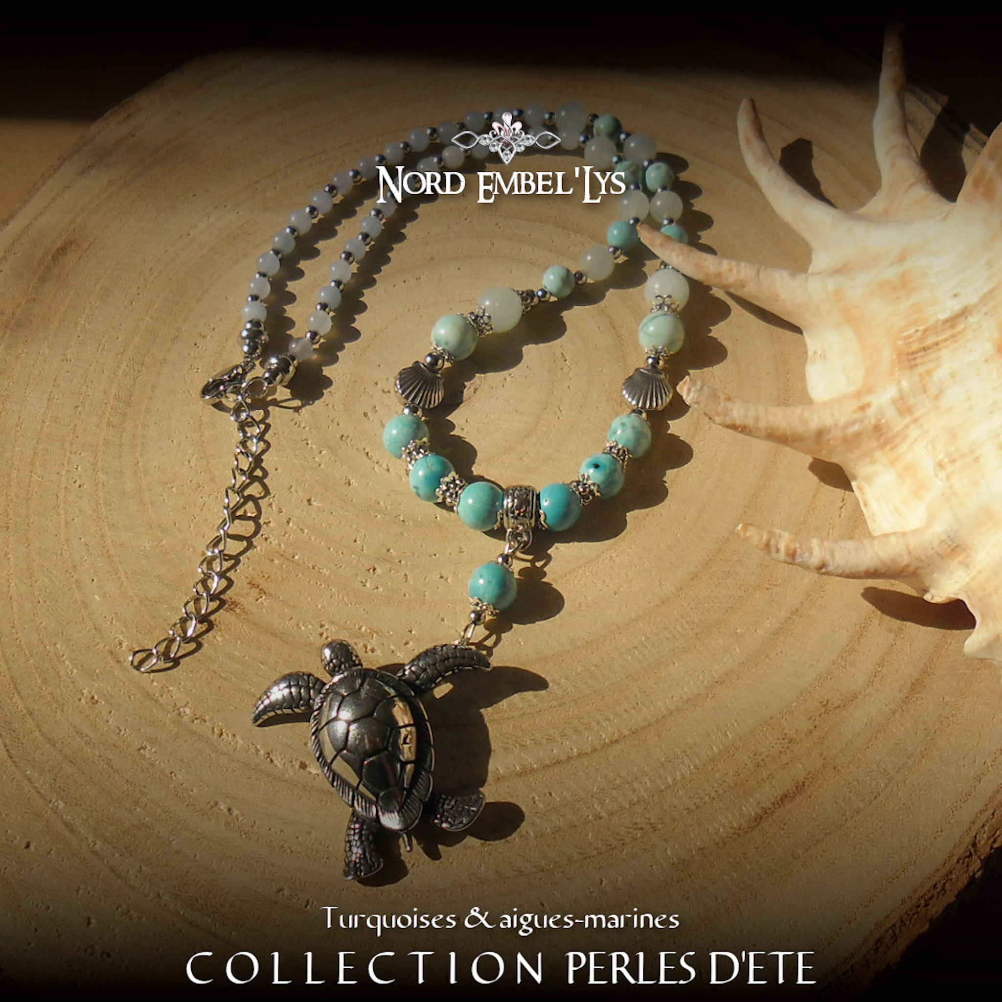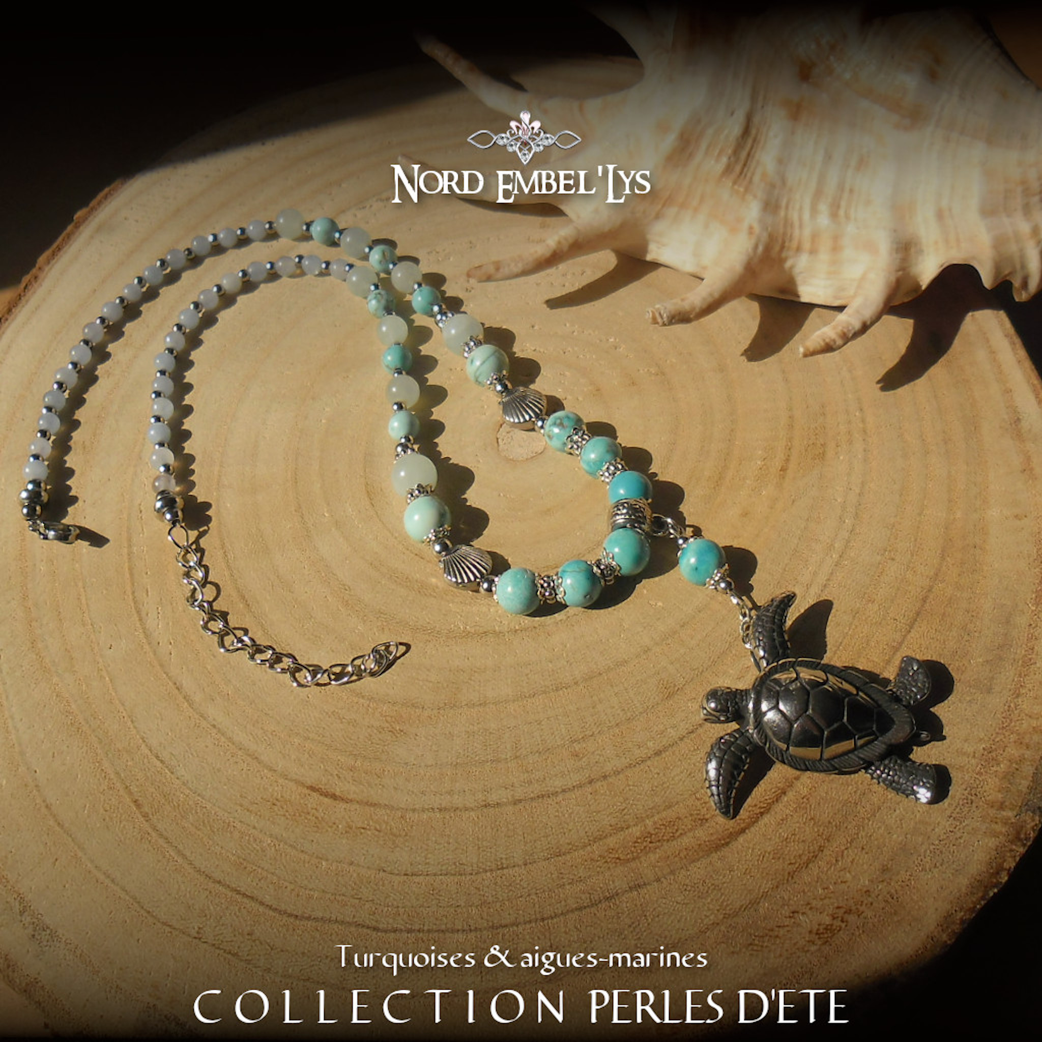 Soyez le premier à laisser votre avis sur “Collier Tortue Turquoise Aigue-marine”