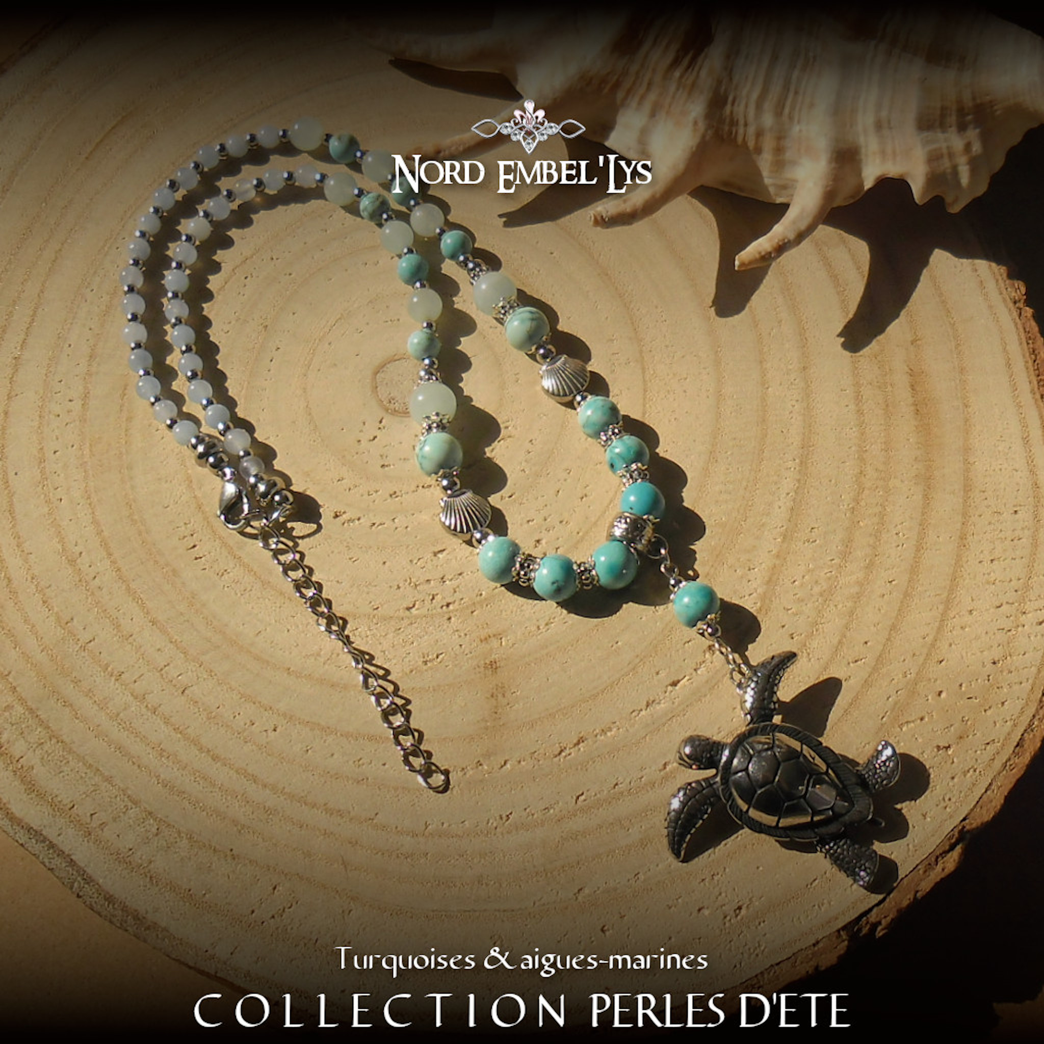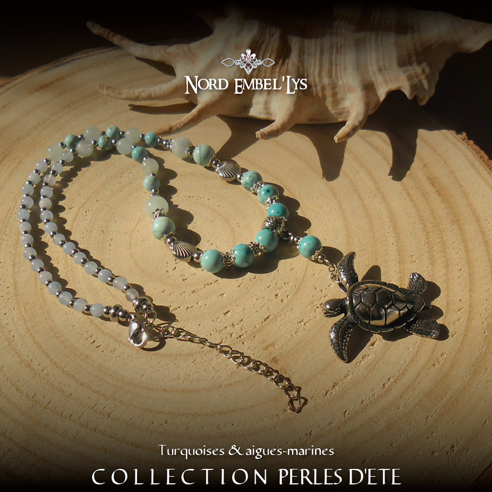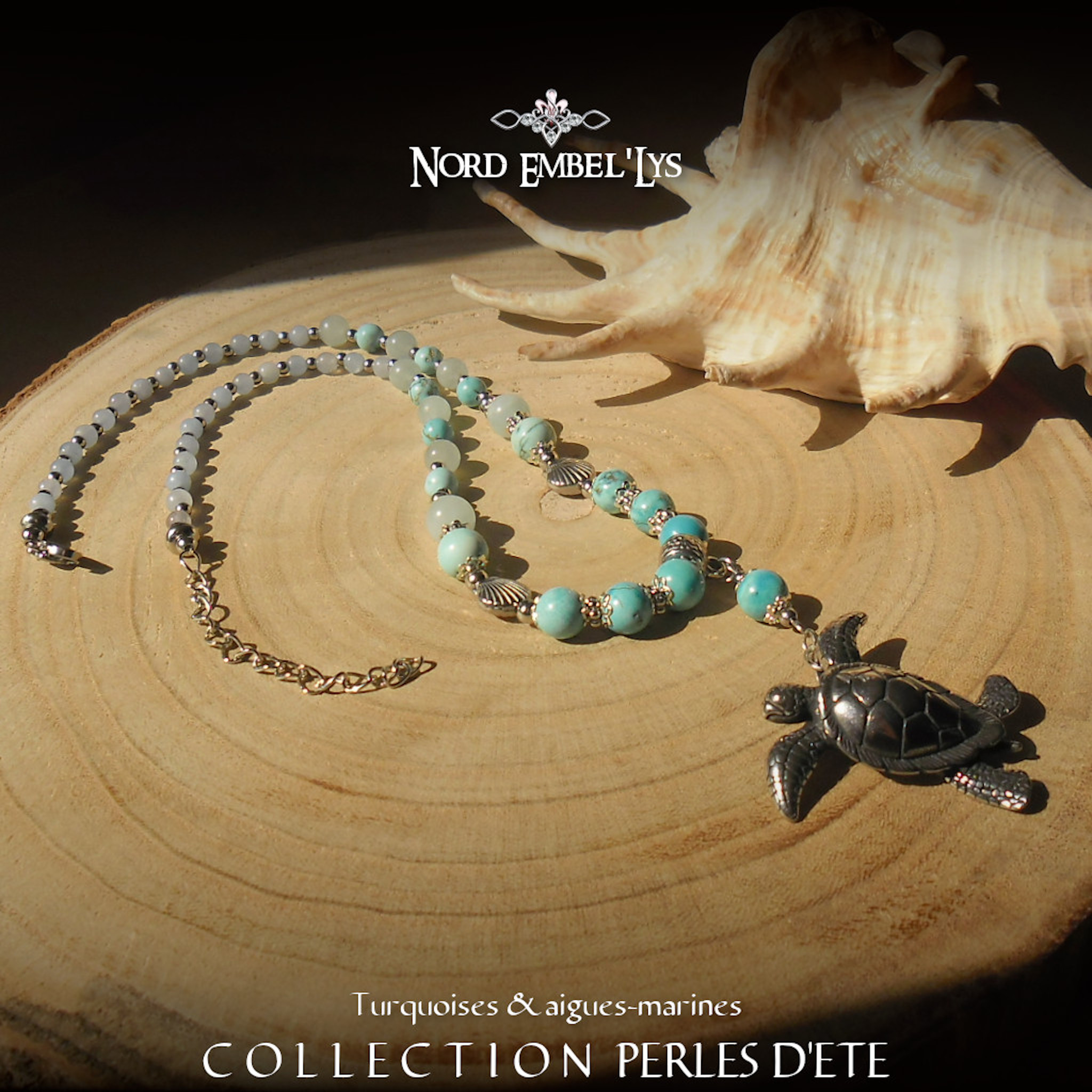 Soyez le premier à laisser votre avis sur “Collier Tortue Turquoise Aigue-marine”