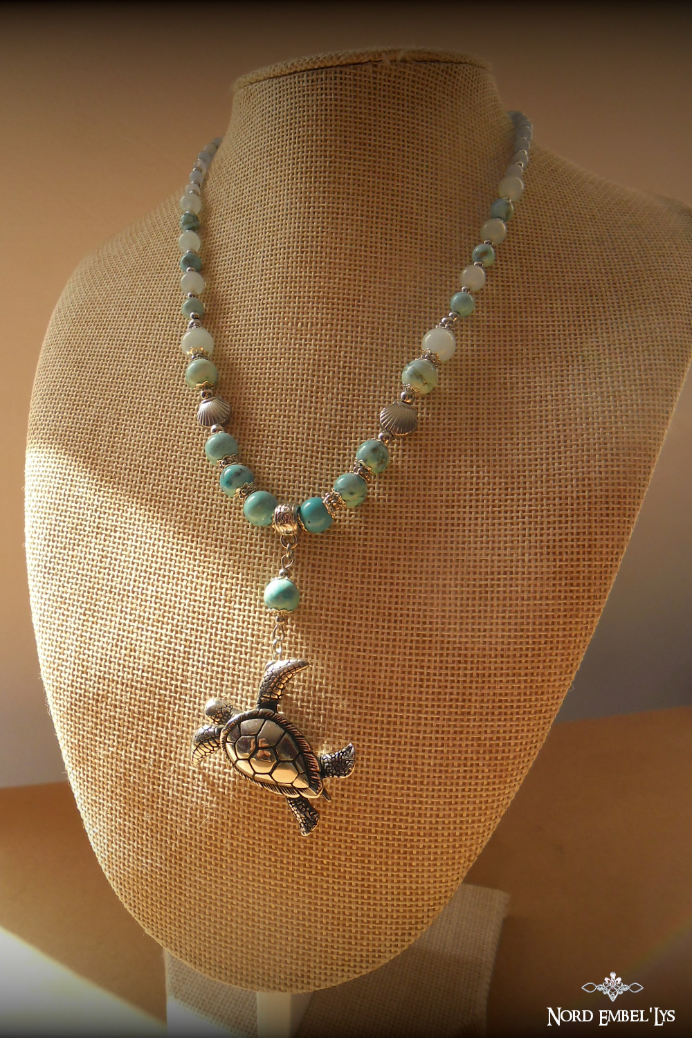 Collier Tortue Turquoise Aigue-marine